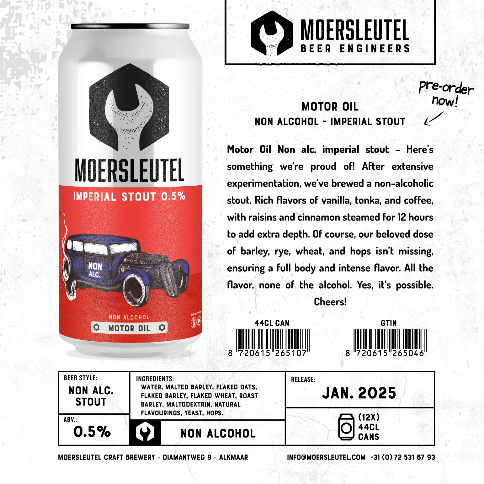 Voici quelque chose dont nous sommes fiers ! Après de longues expérimentations, nous avons brassé un stout sans alcool vraiment digne de Moersleutel.