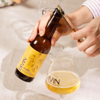 IPA dorée claire, légèrement trouble, au parfum fruité de houblon. Le Sauvignon Blanc apporte de subtiles notes d’agrumes et florales. Fraîche et équilibrée, elle se termine sur une acidité délicate.